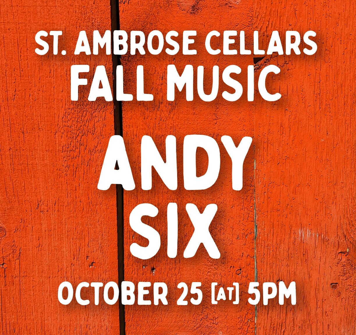 Andy Six LIVE! Join us for a night of music and mead as we welcome Andy Six to the Cellars’ stage! + Add to Google Calendar + iCal / Outlook export 00 days 00 hours 00 minutes 00 seconds Date Oct 25 2025 Time 5:00 pm - 8:00 pm Category Live Music Share this event