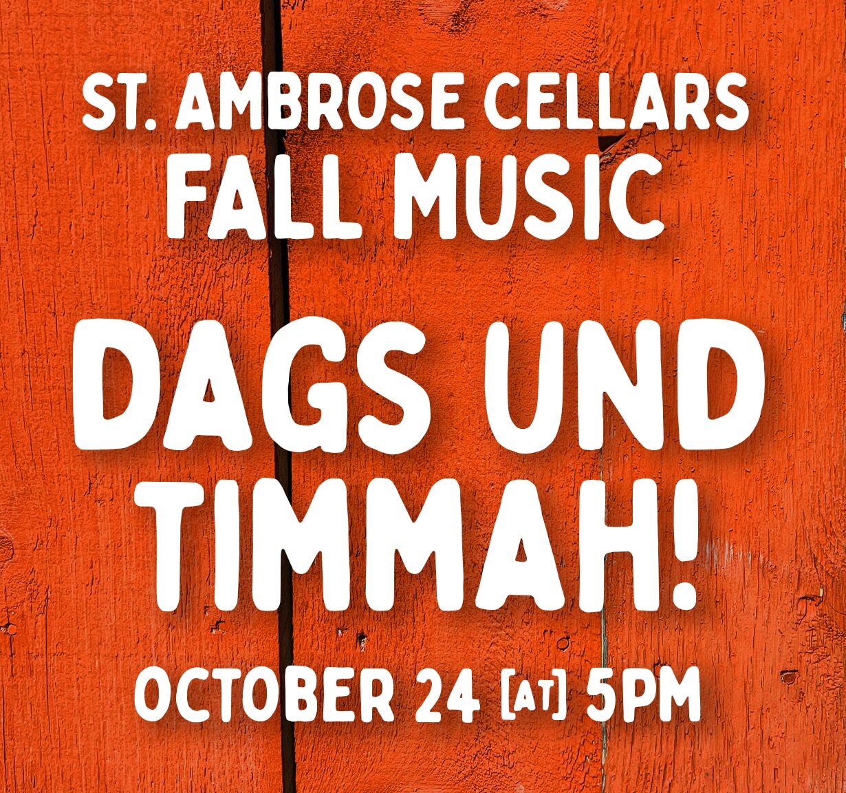 Dags Und Timmah LIVE! Join us for a night of music and mead as we welcome Dags und Timmah to the Cellars’ stage! + Add to Google Calendar + iCal / Outlook export 00 days 00 hours 00 minutes 00 seconds Date Oct 24 2025 Time 5:00 pm - 8:00 pm Category Live Music Share this event